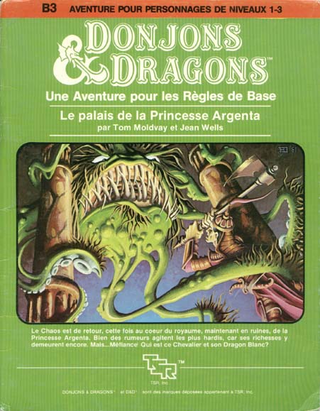 Item Code: #4520 (B3) Title: Le palias de la Princesse Argenta Type: Adventure Author: Tomb Moldvay and Jean Wells Published: 1986 Format: 32-page book w/cover |