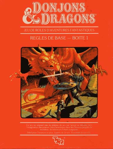 "Alors que vous vous retournez l'épée tirée, l'énorme dragon rouge - cracheur de feu - fonce sur vous en poussant un rugissement terrifiant !" C'est ce type de situations, et bien d'autres encore plus excitantes, que vous allez pouvoir vivre grâce à la boîte de jeu : "Donjons et Dragons - Règles de base". Cette nouvelle version, complètement revue et corrigée, contient tout ce dont vous avez besoin pour faire vos premiers pas dans le monde fabuleux du jeu d'imagination. La boîte contient tout ce qu'il faut pour débuter : - un livret pour les joueurs où vous trouverez le mode de création des personnages, des sorts de magie, des règles de combats, des conseils pour jouer, et même une aventure en solo que vous pourrez jouer dès le début. - un livret pour le Maître de Donjon, contenant des monstres, des trésors, des objets magiques, des conseils pour faire face aux situations rencontrées, ainsi qu'une aventure toute prête à faire jouer à votre groupe de personnages/joueurs. - tous les dés dont vous aurez besoin (dés à : 4, 6, 8, 10, 12, 20 faces). Et quand cette boîte ne vous suffira plus, relevez le défi, et essayez la boîte : "Donjons et Dragons - Règles Expert" (plus de règles, plus de trésors, plus de monstres - pour plus d'Aventure ! ...). |