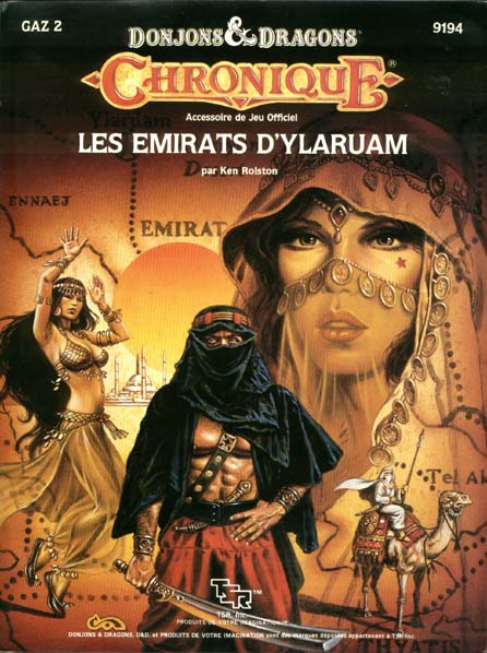 Item Code: #9491 (GAZ2) Title: Les Emirats d'Ylaruam Type: Accessory Author: Ken Rolston Published: 1987 Format: 64-page book w/tri-fold cover, 2 fold-out maps |