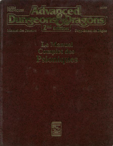 Item Code: #2117F (MJSR5) Title: Le Manuel Complet des Psioniques Type: Accessory Author: Steve Winter Format: 128-page perfect-bound book |