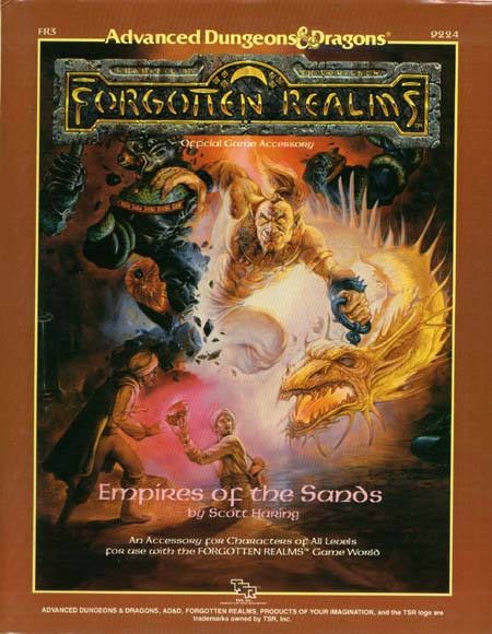 Item Code: #9224 (FR3) Title: Empires of the Sands Type: Accessory Author: Scott Haring Published: 1988 Format: 64-page book, 2 full-color fold-out maps |