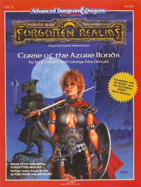 Item Code: #9239 (FRC2) Title: Curse of the Azure Bonds Type: Adventure Author: Jeff Grubb and George MacDonald Published: 1989 Format: 96-page book |