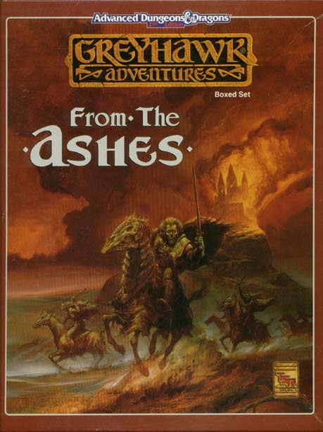 Item Code: #1064 Title: From the Ashes Type: Accessory Published: 1992 Format: 2 96-page books, 3 fold-out maps, 20 cardstock reference sheets, 5 Monstrous Compendium sheets |