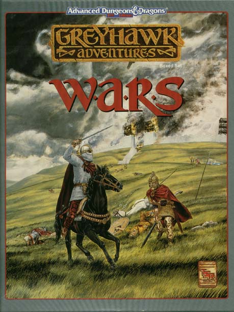 strings of war like a mad puppeteer. Take command of the armies yourself and change the dark course of history! Between two and six players can battle, deciding the Flanaess's fate in diplomacy and war, and leading armies and heroes across two full-color maps. Muster your armies from over 300 counters, ranging from light infantry to dragons - with your favorite demi-humans and monsters as well! With over 150 cards, you can search for treasure or mercenaries and receive the gods' blessing (or curse) through special events. When the battle comes - the times that try the souls of all - you'll want your armies backed with the wisdom contained within the 32-page history of the actual war. The boxed set also includes an easy-to-read 8-page book of rules, with optional advanced rules for hard-core wargamers. The Flanaess awaits a heroic deliverer - or an oppressive overlord! Which will you be? |