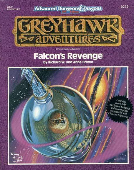 threats - you've been in town only a few days! Something evil does lurk in Greyhawk. But before it can be eliminated, it must first be discovered. Can your party find it before it finds you? Falcon's Revenge is the first of a three-part series of adventures for the ADVANCED DUNGEONS & DRAGONS 2nd Edition role-playing game, but it can also stand alone. Set in the famed City of Greyhawk, it gives adventurers a taste of life in the big city - with someone or something brewing trouble. Falcon's Revenge is designed for five to seven characters of levels 5 to 7. |
