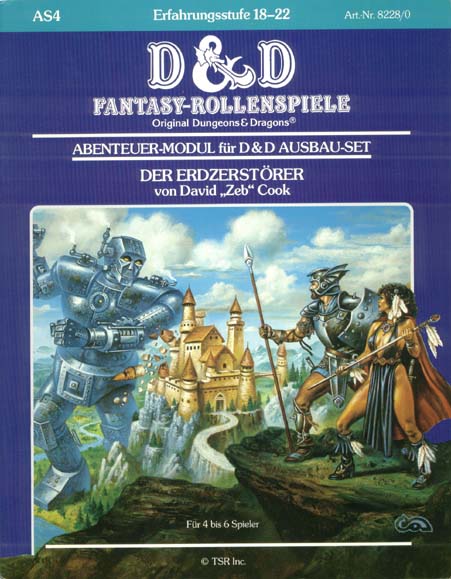 Item Code: #8228/0 (AS4) Title: Der Erdzerstörer Type: Adventure Author: David "Zeb" Cook Published: 1984 Format: 24-page book w/tri-fold cover |