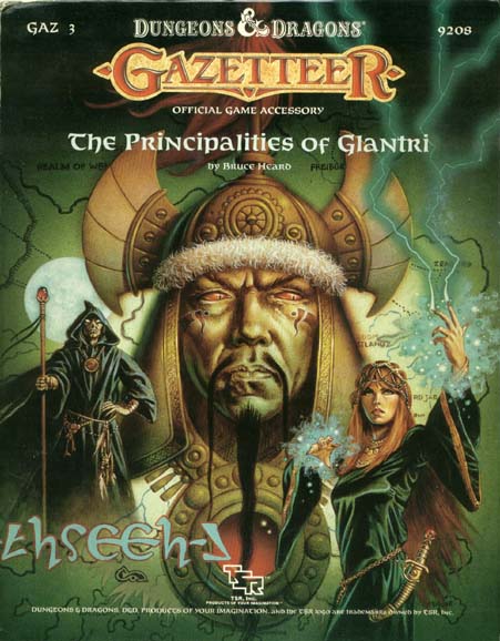 Item Code: #9208 (GAZ3) Title: The Principalities of Glantri Type: Accessory Author: Bruce Heard Published: 1987 Format: 96-page book w/cover, fold-out map |