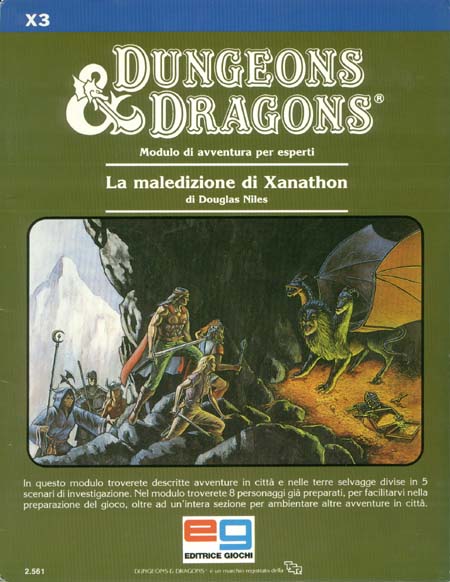 Item Code: #2561 (X3) Title: La maledizione di Xanathon Type: Adventure Author: Douglas Niles Published: 1982 Format: 32-page book w/cover |