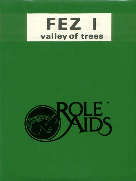 Item Code: #703 Title: Fez I: Valley of Trees Type: Adventure For: 4-10 characters, levels 5-9 Author: Len Bland and James Robert Published: 1982 Format: 40-page book, folder, cardstock backer, cardstock back cover page |