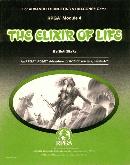 Item Code: #6067 (RPGA4) Title: The Elixir of Life Type: Adventure Author: Bob Blake Published: 1983 Format: 16-page book w/cover |