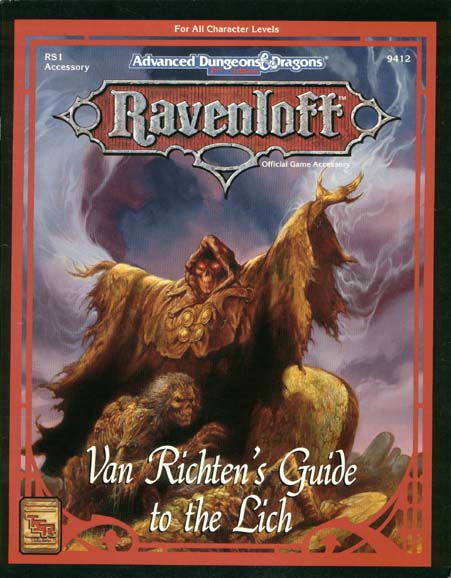 Item Code: #9412 (RS1 - actual, RR6 - nominal)) Title: Van Richten's Guide to the Lich Type: Accessory Author: Eric W. Haddock Published: 1993 Format: 96-page book |