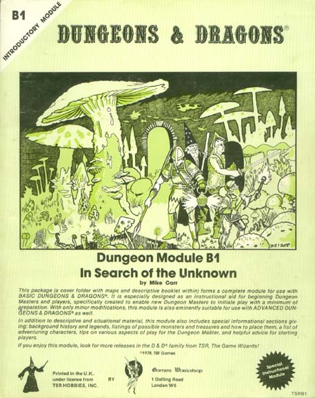 Item Code: #TSRB1 (B1) Title: In Search of the Unknown Type: Adventure Author: Mike Carr Published: 1978 Format: 32-page book w/cover |