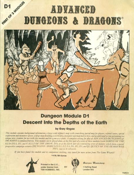Item Code: #TSRD1 (D1) Title: Descent Into the Depths of the Earth Type: Adventure Author: Gary Gygax Published: 1978 Format: 16-page book w/tri-fold cover |